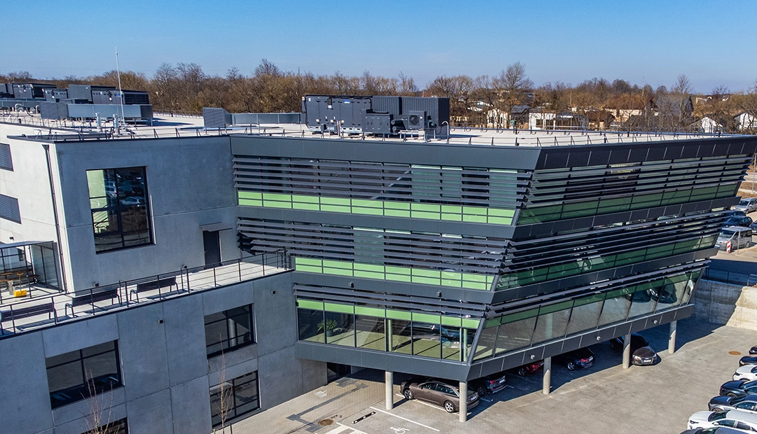 KOMFOVENT tento princip uplatnil i ve své nové administrativní budově, ve které jsou od roku 2021 soustředěna všechna klíčová oddělení. Optimální vnitřní klima zde zajišťuje pět jednotek RHP Pro2, které efektivně reagují na proměnlivé litevské počasí.