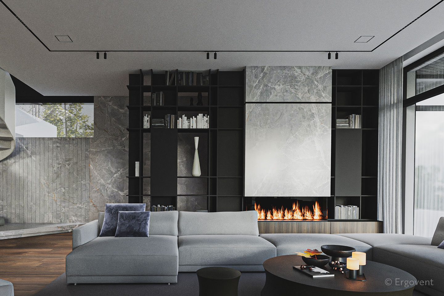 - Designový bezrámečkový sádrový ventil pro čisté, „neviditelné“ vyústění v interiéru