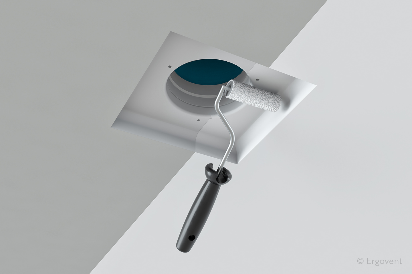 Bezrámečkové (zapuštěné) provedení umožňuje instalaci do SDK. Po přetření barvou stropu či stěny ventil vizuálně splyne s povrchem a v prostoru zůstává jen jemná štěrbina pro proudění vzduchu.
