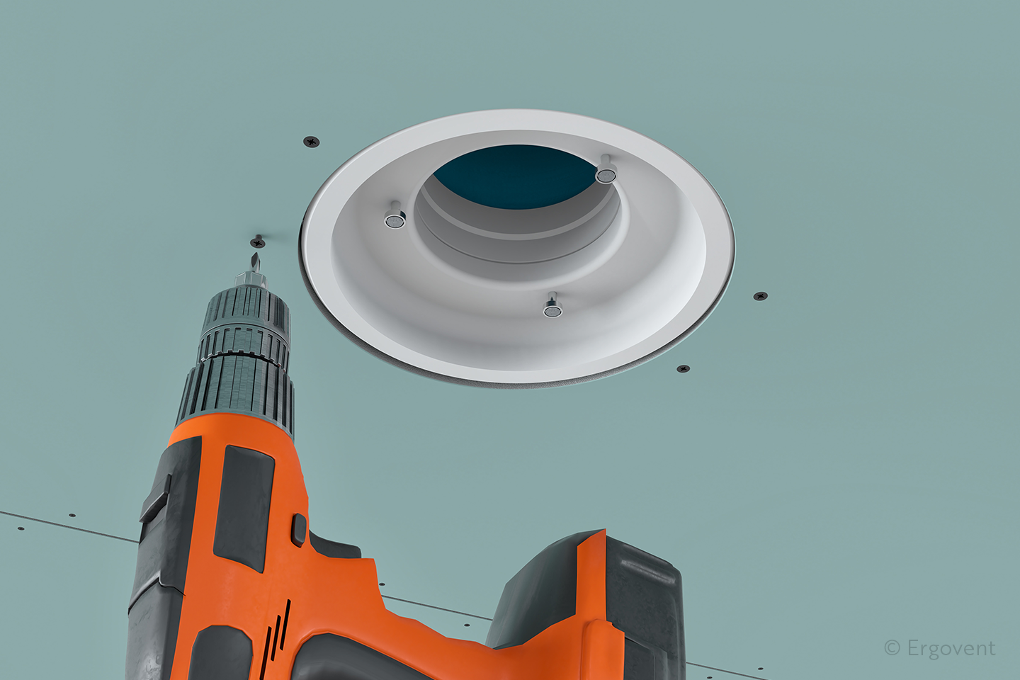 Bezrámečkové (zapuštěné) provedení umožňuje instalaci do SDK. Po přetření barvou stropu či stěny ventil vizuálně splyne s povrchem a v prostoru zůstává jen jemná štěrbina pro proudění vzduchu.