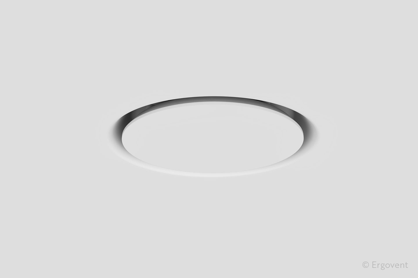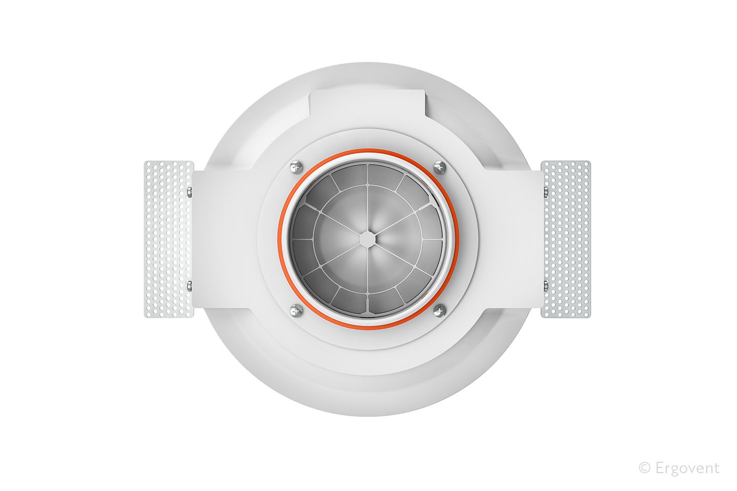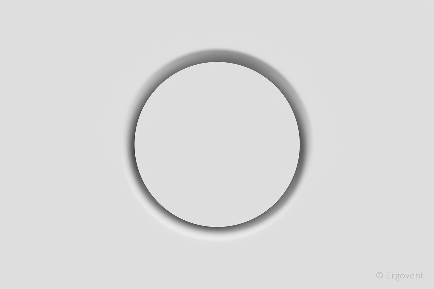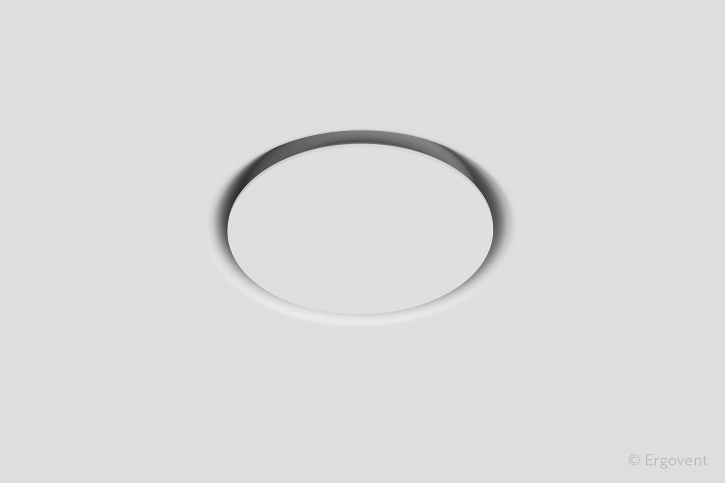 ERGOVENT RONDO COANDA 100 je bezrámečkový sádrový talířový ventil pro přívod i odvod vzduchu, určený pro instalaci do SDK podhledu nebo stěny. Zapuštěné provedení vytváří čistý detail bez viditelných okrajů – po přetření barvou stropu či stěny ventil vizuálně splyne s povrchem a viditelná zůstává pouze úzká štěrbina pro proudění vzduchu. Varianta COANDA podporuje komfortní distribuci vzduchu v interiéru.